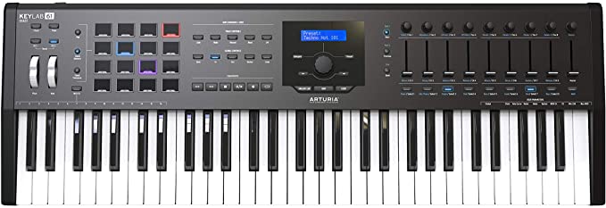 The Keylab MKII 61 is a rather new controller by Arturia and a good one at that. It comes with 5 control inputs and 16 RGB backlit pads. The pad functionality is some of my favorite with this controller as you will find they’re not too stiff.